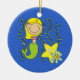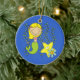 Uma sereia de cabelo loura de sorriso debaixo d'água com a alga e a estrela do mar amarela, um design bonito do tema do oceano para as meninas que amam sereias. T-shirt da sereia, bodysuits, babadores, coberturas, panos do burp, ímãs, cartões, bolsas, etiquetas, correntes chaves, mousepads, travesseiros, pulsos de disparo de parede, lembranças, e muito mais!