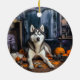 Ornamento De Cerâmica Siberian Husky Pumpkins Halloween Scary
