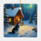 Ornamento De Cerâmica Siberian Husky Snowy Cabin Christmas Painting