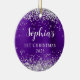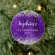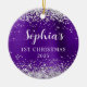 Ornamento De Cerâmica Silver Glitter Ingigo Foil 1st Christmas Photo