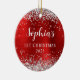 Ornamento De Cerâmica Silver Glitter Red Faux Foil 1st Christmas Photo