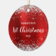 Ornamento De Cerâmica Silver Glitter Red Foil 1st Christmas