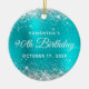 Ornamento De Cerâmica Silver Glitter Turquoise Foil 90th Birthday