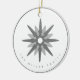 Ornamento De Cerâmica Silver Snowflake | Nome da família Monograma e dat