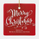 Ornamento De Cerâmica Simples Script Vermelho de Foto Feliz Natal