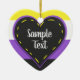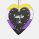 Enfeites de natal cerâmico em forma de coração com bandeira não-binária de orgulho e coração no centro do design. Uma bandeira amarela, branca, roxa e negra do movimento do orgulho puro; com um campo de texto editável para seu nome ou mensagem; uma forma excelente de decorar sua árvore de Natal: D