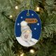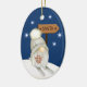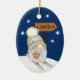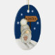 Aqui está um adorável ornamento de Feriado para qualquer criança, especialmente um neto, filha, filho, sobrinha ou sobrinho. A frente tem um adorável gnomo com uma barba branca longa e vestida com um chapéu branco. O gnomo está em esquis de neve numa colina com flocos de neve à sua volta. Ele carregar um galho de bagas vermelhas do Feriado, e o sinal por trás dele aponta para Papais noeis. A parte traseira do ornamento corresponde a azul com os flocos de neve e o texto personalizado em branco dentro de 5 campos de texto. Faça-o dizer o que quiser!