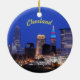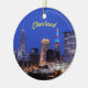 O horizonte noturno de Cleveland Ohio. Vista de captura de olhos mostrada no ornamento cerâmico, adicione o orgulho de casa ao decoro em qualquer lugar!