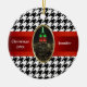 Skyline de Nova Iorque: Edifício de Ruas Emp se iluminou em Vermelho e Verde, Ante Negro e Branco - Enfeites de natal A linha do horizonte de Nova Iorque com o icônico Edifício de Ruas Emp iluminado para o Natal em vermelho e verde, em um quadro de aparência dourado, contra um fundo sonoro preto e branco com fita vermelha. 2012 ©NYCisMyMuse