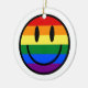 Este trabalho de arte colorido apresenta um smiley face arco-íris.