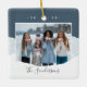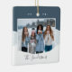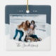Um Enfeites de natal moderno e aconchegante, ao estilo hygge, com uma foto favorita em um fundo de neve com blocos coloridos, na natureza suave, inspirou cores de férias. Personalize com seus nomes ou nome de família embaixo, e o ano no topo. Adicione uma segunda foto ao verso.