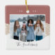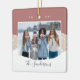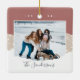 Um Enfeites de natal moderno e aconchegante, ao estilo hygge, com uma foto favorita em um fundo de neve com blocos coloridos, na natureza suave, inspirou cores de férias. Personalize com seus nomes ou nome de família embaixo, e o ano no topo. Adicione uma segunda foto ao verso.