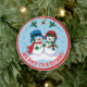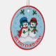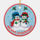 Personalize este Enfeites de natal Adorável "Um Tipo" de Neve! Sr. & Sra. Frosty, o boneco de neve está pegando um filme de Natal mágico através de uma "Terra das Neves do Inverno"! Design de Belas Artes Original pelo Artista Kerry Miller.