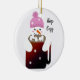 Ornamento De Cerâmica Snowman a abraçar uma caneca de chocolate quente
