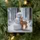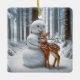 Ornamento De Cerâmica Snowman Hugging a Fawn