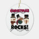 Neves em chapéus de topo e texto que diz "Rochas de Natal!" em um ornamento de feriado perfeito para quem ama neve e Natal!