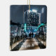 Holiday season in Buffalo, NY as the snowy night is filled with dazzling lights at Canalside.