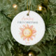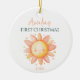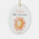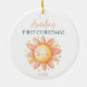 Uma Enfeites de natal de 1rua de bebê adorável com uma ilustração do sol que sorri, personalizada com um nome e um ano. Design neutro em termos de gênero e de dupla face. Ideal recém-nascido para os Feriados.