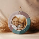 Adicione uma foto favorita a este ornamento quadrado para uma adição festiva e memorável à sua árvore! O Design redondo apresenta uma foto favorita em cada lado, sobre um fundo de listras onduladas orgânicas em tons suaves de sábio e verde esferográfica. Personalize com o ano e seu nome familiar.