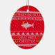 Este ornamento divertido é perfeito para o amante do tubarão. Ou alguém que aprecie a diversão da campia de suéteres de Natal feios. Este ornamento diz "Sonhando com um Excelente de Natal Branco" e apresenta um tubarão com um chapéu de santa em um design que parece estar tricotado em um suéter feio. Pequenas árvores, doces, peixes e mais acabam com o olhar decorativo para esta design. O fundo vermelho é excelente fácil, mas você pode mudá-lo se quiser! Este design também está disponível em muitos outros produtos de excelente, incluindo cartões de saudação e papel de embalagem.