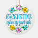 Uma maneira bonita de mostrar como crocheting traz a felicidade a sua vida. Estas flores coloridas e as palavras - Crocheting faz meu coração sorrir, será certo expressar seu amor.