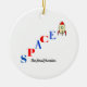 This beautiful keychain features a design of a rocket ascending in space seeking to reach its starting point.