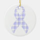 Ornamento De Cerâmica Stomach Cancer Awareness Plaid Periwinkle Ribbon