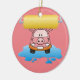 Sorrindo carro de animação de porco lavando com pincel. Texto personalizado no verso.