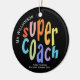 O obrigado perfeito para o presente de ornamento para um super treinador. Este design de tipografia brilhante e divertida pode ser personalizado com um nome e uma mensagem personalizados. Para qual super treinador você vai oferecer isso?