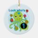 Crianças que comemoram seu primeiro aniversário que amam a vida marinha e o polvo adorarão nossas t-shirts de aniversário do Octopus, bolsas de tote, botões, guardas e outros roupa de primeiro aniversário e presentes.