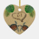 Celebre seu primeiro Natal como marido e esposa, ou como casal, ou lembre-se de uma fuga tropical especial com esse ornamento em forma de coração apresentando um coração na areia com QUALQUER sigla, tartaruga marinha e frondes de palma. Sala atrás para sua mensagem especial.