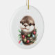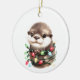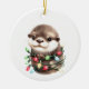 Uma lontra adorável embrulhada em luzes de Natal