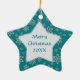 Ornamento De Cerâmica Teal Silver Snowflakes Modelo de Foto Natal