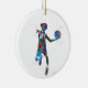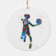 Vibrant watercolor artwork of a teenage basketball player featured on a ceramic ornament. A modern and energetic sports design perfect for decoration or as a gift for young athletes.