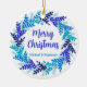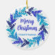 Elegante Blue Merry Christmas Wreath Cerâmica Ornament Um Enfeites de natal elegante que você pode personalizar para amigos e família na temporada de festas. Este é também um presente de anfitriã excelente se você comparecer a uma reunião durante os feriados de Natal.