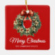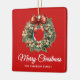 Ornamento de férias elegante, com uma aquarela festiva, coroa de Natal enfeitada com arco vermelho e rodeada por bagas sagradas. Personalize a parte frontal do ornamento da camada de natal com uma saudação personalizada, seu nome de família ou outro texto personalizado. O ornamento de feriado personalizado é o presente perfeito para dar a pais, avós, amigos, professores e muito mais!