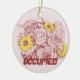 Anuncie a situação quando você pendura este ornamento bonito em uma porta.  Este ornamento cerâmico redondo decorativo é decorado com uma fotografia colorida do buquê da flor alterada digital em um terra - design afiado cotta do modelo com as margaridas destacadas amarelas.  O clique "personaliza-o!" para preencher os campos do modelo com suas palavras, remova todo o texto ou "personalize-o!" para selecionar um estilo de pia batismal, o tamanho e colorir seu prefere.