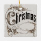 Ornamento De Cerâmica Texto de Natal Antigo com Bordas Ornamentadas