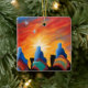 Celebrate the wonder of the Nativity with this striking ceramic ornament featuring an abstract depiction of the Three Wise Men journeying beneath a radiant sky. Silhouetted against a vivid sunset of crimson, gold, and violet, the Magi ride their camels toward the guiding Bethlehem star that marks the birth of Jesus Christ. This modern interpretation blends tradition with bold color and spiritual symbolism, making it a meaningful addition to any Christmas tree or holiday gift. Perfect for faith-based celebrations, religious keepsakes, or anyone who cherishes the story of the first Christmas.