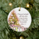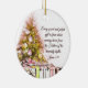 Um Enfeites de natal personalizado adorável retrata uma bela árvore artística com presentes empacotados e mostra o verso Bíblia James 1:17, "Cada presente bom e perfeito é de cima, vindo do Pai das Luzes Celestiais." A bênção posterior pode ser modificada para a saudação de sua escolha.