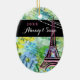 Este ornamento da árvore de Natal apresenta uma postagem bonito no tema Paris marcada como fundo com flores azuis, roxas e amarelas. Há também uma torre Eiffel ousada em tons de rosa e preto. Ele pode ser personalizado com um nome, ano ou qualquer texto que você queira adicionar. Alguns gráficos de Origins Digital Curio em www.etsy.com/shop/OriginsDigitalCurio. Obrigados para passar!