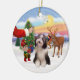 Papais noeis oferecem a sua Collie com o barba como os elfos carregam o trenó antes da grande noite.