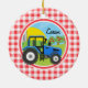 Ornamento De Cerâmica Trator Azul; Gingham Vermelho e Branco
