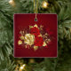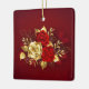 A composição de duas rosas vermelhas pintadas artisticamente e uma rosa ouro, decorada com ouro, folhas de joias sobre fundo texturizado.