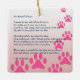 Memorialize a memória do seu animal de estimação com este ornamento quadrado. Pendure em um lugar onde possam ser recordados. As palavras de consolação deste poema devem ajudar qualquer um que se está afligindo a perda de um animal. Os animais são tal parte de nossas vidas que é um momento difícil em que passarem. A prosa aqui permite que nós representem-nos em um formulário aperfeiçoado e compreendam-nos que são sempre connosco. Este design é cor-de-rosa para um animal fêmea.