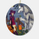A witch and a werewolf enjoy their Trick or Treat candy on a cool Halloween night.