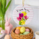 Decorre os botões da sua Páscoa ou da cozinha com este ornamento cerâmico de primavera bonito. Este ornamento apresenta tulipas cor-de-rosa e daffodils amarelos com uma faixa rosa e branca. Um bonito ornamento floral como este seria um presente Páscoa pensado para aquele especial.