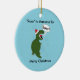 Você gosta de dinossauros e de decoração de Natal única? Um dinossauro verde tiranossauro rex celebra o Natal e as férias vestindo um chapéu de Papai Noel e diz rugem contra um fundo azul coberto de flocos de neve. O texto do Roar! na bolha de fala e o nome pode ser alterado e personalizado para o ajustado das suas necessidades! O texto, "Roar!" é um dinossauro para o Feliz Natal também pode ser personalizado para ajustado de suas necessidades!