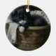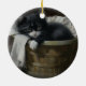 Toda árvore de Natal precisa de um gatinho doce, não acha? Esta pintura foca-se num adorável gatinho preto e branco enfiado em cima de um cobertor branco numa cesta pregada num canto confortável. Os olhos do gatinho são brilhantes e curiosos, e parece estar tocando para a borda na borda do cobertor. As cordas brancas da borda são tão tentadoras! A área circundante está pouco iluminada, criando uma sensação de calor e intimidade. A pintura expele um sentimento de conforto e tranquilidade, como se o telespectador tivesse tropeçado num momento sereno na vida desse felino brincalhão. Os detalhes na pintura se juntam para criar uma cena encantadora e carinhosa que encantará qualquer amante de gatos.