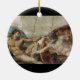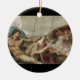 Deus que alcança para fora e que toca na sucata de Adam na pintura de Michelangelo da criação do homem no teto da capela de Sistine.